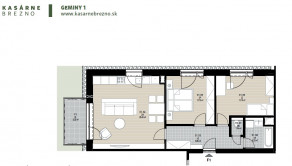 Ponúkame na predaj posledný voľný 3-izbový byt (3KK) E1 s balkónom v rezidencii GEMINI I v modernej mestskej štvrti Kasárne – Brezno.