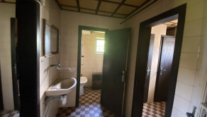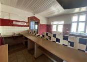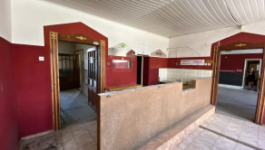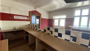Predná časť stavby: kuchyňa (veľký pôvodný murovaný šporák), výčap, 3 miestnosti, sklad, toalety (dámske, pánske), + 2 izby, kúpelňa (zázemie pre personál)