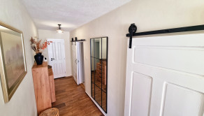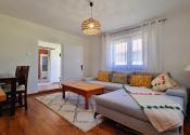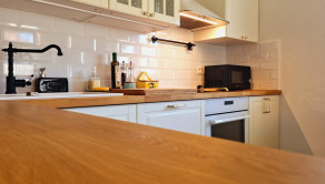 Interiér a obytné miestnosti: výmena všetkých okien za kvalitné trojsklá, znížené a zateplené stropy, zateplené podlahy v kuchyni, chodbe a kúpeľni, nové omietky a výmaľba, renovácia interiérových dverí (kované koľajnice), kompletný nový nábytok