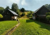 Exteriér a pozemok: Nová strešná krytina s latovaním a strešným oknom, nové odkvapy a dažďový trativod s vyústením do potoka, upravený terén, uložené podvaly, štrkové plochy s obrubníkmi, nový plot, výsadba tují, nová fasáda hospodárskej budovy, upravený vstup so schodiskom a zábradlím