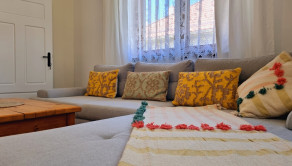 Dispozícia: dispozične je nehnuteľnosť riešená ako čiastočne podpivničený rodinný dom s obytným vyvýšeným podlažím. Na hlavnom podlaží sa nachádza vstupná chodba, kuchyňa, dve obytné miestnosti (obývacia izba, spálňa), kúpeľňa a komora. V suteréne sú prístupné dva samostatné vstupy – prvý vedie do priestoru s možnosťou realizácie ďalšej obytnej miestnosti, sauny alebo domáceho wellness so samostatným výstupom do záhrady - v tomto priestore je priznaný pôvodný kamenný mur, ktorý dodáva interiéru autentický prírodný charakter. Druhý vstup slúži ako technické zázemie so strojovňou (kotol) a skladovým priestorom pre náradie a údržbu.