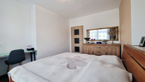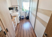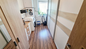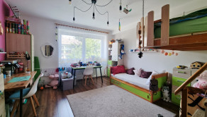 Dispozícia: priestranná vstupná chodba, nepriechodné 4 izby (obývacia izba, spálňa, detská izba, izba využívaná ako odkladací priestor, kde je práčka, sušička, priestot na žehlenie atď.), kúpeľňa s vaňou, samostatné WC. Orientácia východ–juh zaručuje denný komfort a množstvo svetla.