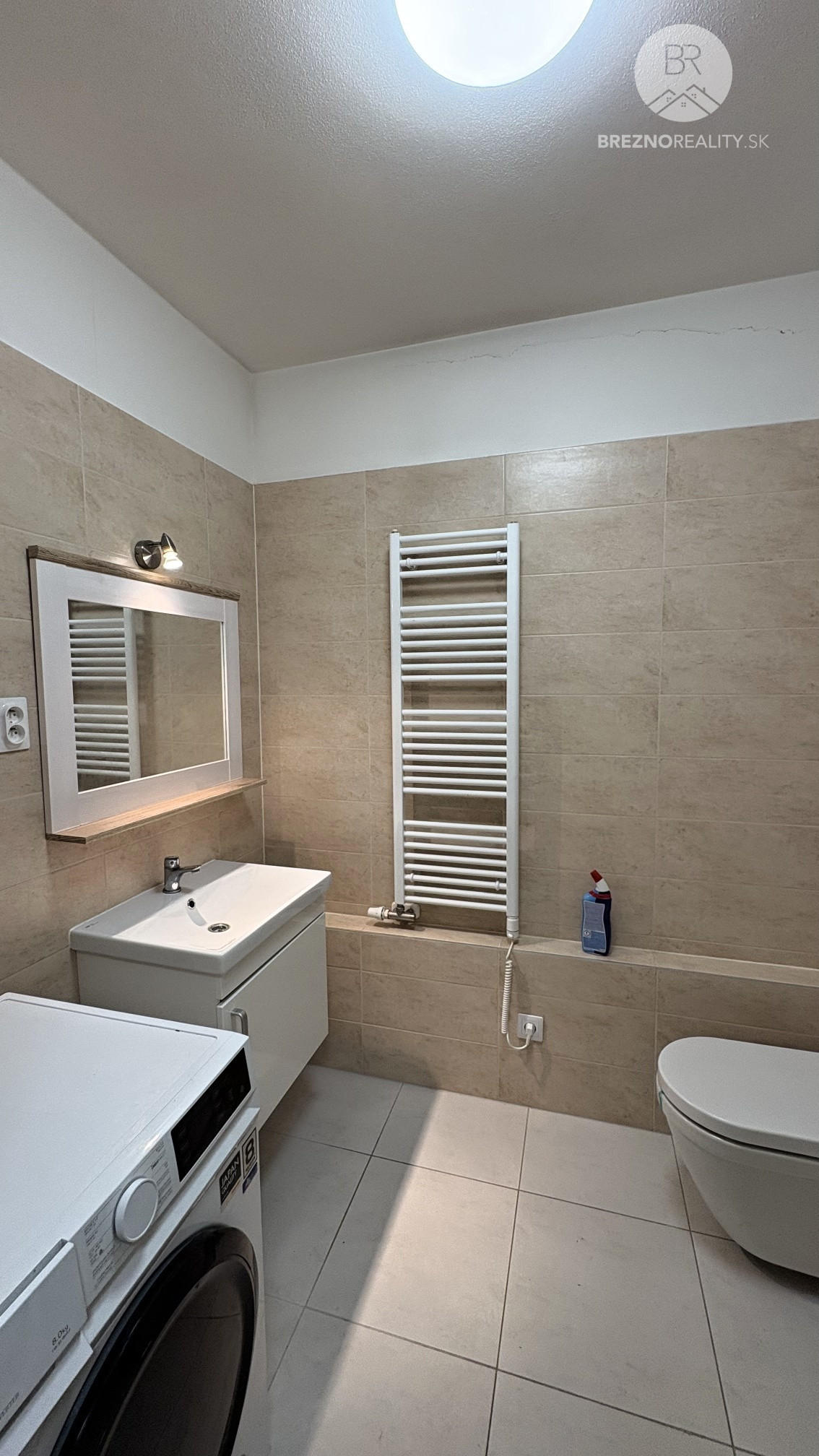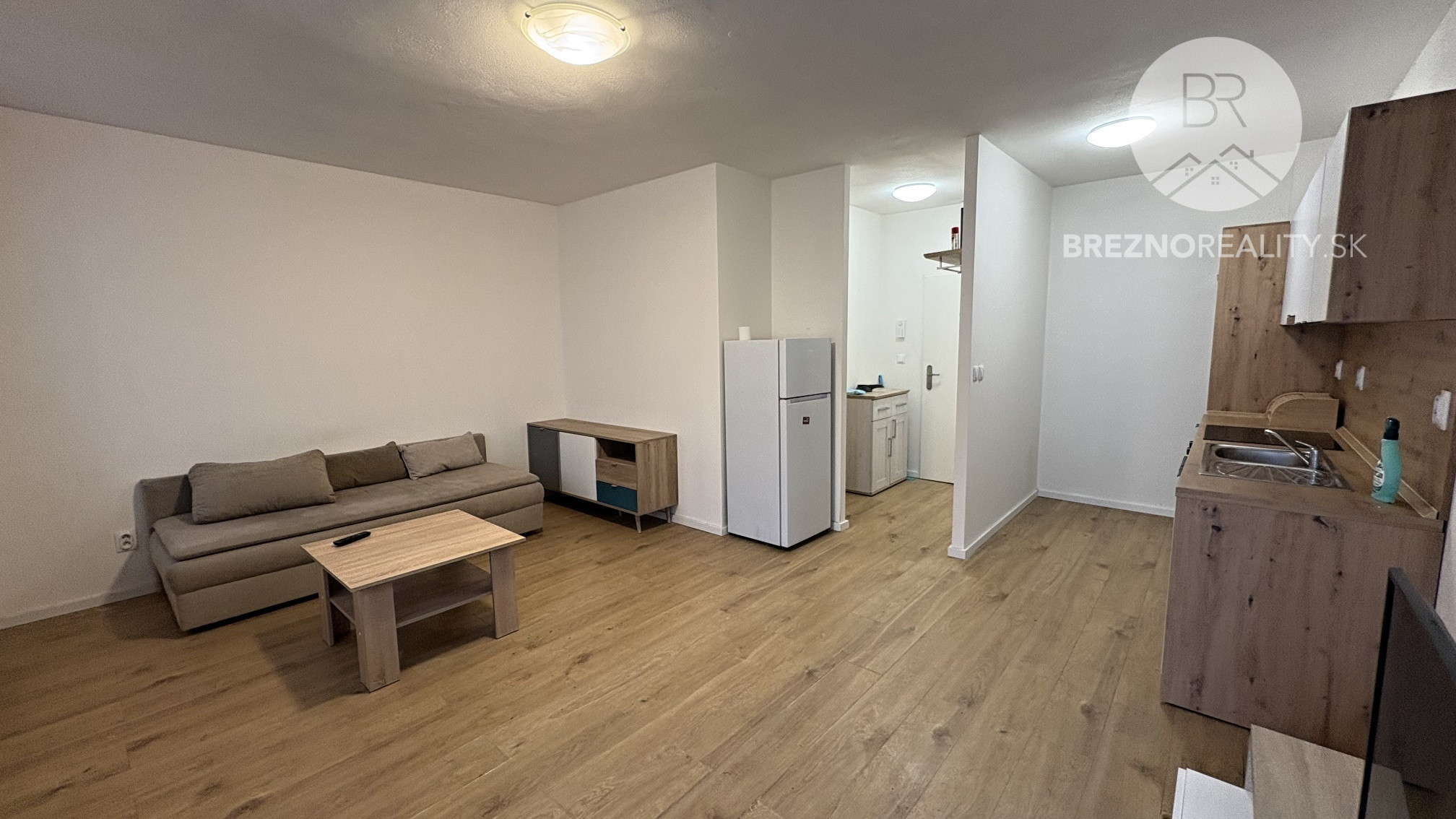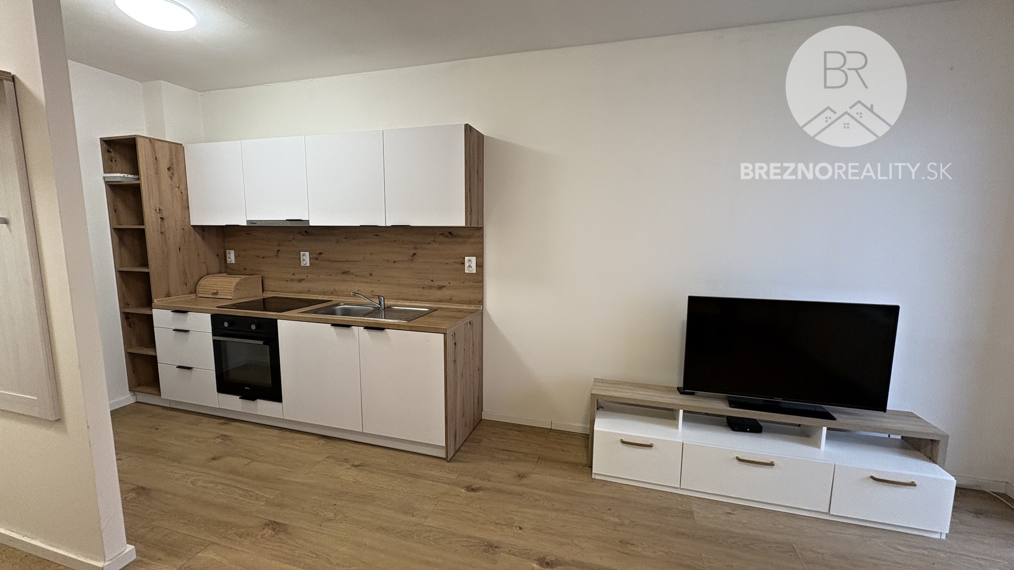 Ponúkame na prenájom 1KK byt o rozlohe 36,8 m2 s balkónom (4,8 m2), parkovacím miestom (12 m2) a pivničnou kobkou (2,04 m2) v novostavbe v Brezne - štvrť Kasárne na druhom podlaží. Byt je orientovaný na južnú stranu a je zariadený- kuchynská linka, teplovzdušná rúra, sklokeramická varná doska, ladnička s mrazničkou, rozťahovacia pohovka, stolík pod televízor, práčka, vešiaková stena a komoda.